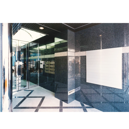 弊社と同じく東天満に所在している企業の築50年以上経過していた自社ビルの建て替え計画である。低層階を自社フロア、高層階をテナントフロアとする階構成になっている。敷地が丁字路の突き当りに面していることから、ガラスカーテンウォールで覆われた階段室を道路の突き当り配置することで、道路から建物の目印になると共に、周辺の高い建物に囲まれた中で階段室からの眺望を確保する計画とした。
