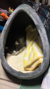 昨夜、さっそく巣穴カドラーを使う姿目撃〜 ♡