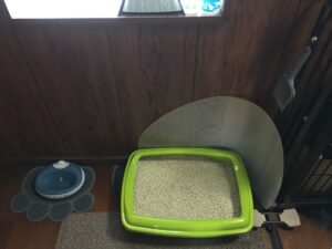 囲われているトイレに入りたがらない。フードを外してみた途端、スムーズに利用してくれるようになった。