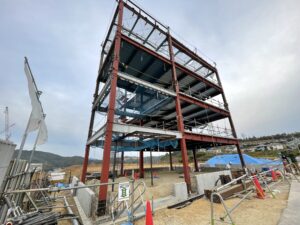鉄骨の建て方工事を行なっています。