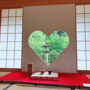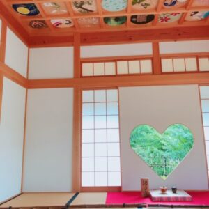 窓がハートの形になった云われとしては、本来天井画を拝観する時に、見やすいように寝転がって拝観する時に
