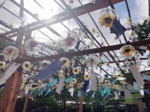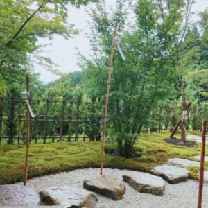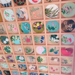 客殿の天井は、日本を代表する書家 祥洲・福田匠吾をはじめ、多くの日本画家協力のもと、花と日本の風景をテーマに描かれた