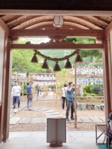また、とても分かりにくいのですが、本堂の入り口の〆縄の上の柱の飾りにもハートの形が使われておりました。
