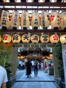 四条から錦市場へ入り、学問の神様の錦天満宮をお参りしました。