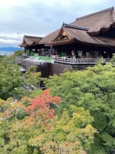 清水の舞台が改修工事中だったので、少し残念でしたが、少し紅葉しているのも見れました。