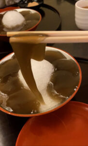 お口の中へ入れると、本当にとろとろで、お好みで黒蜜ときな粉をかけて