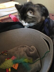 このバッグ、天面メッシュのファスナー開閉になっていて、ダダこねる猫さんに優れモノですヨ。)