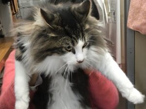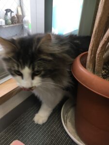 朝から『今日はいつもと違うにゃ・・・』と予感してかしてないのか、朝食をタラフク平らげる!