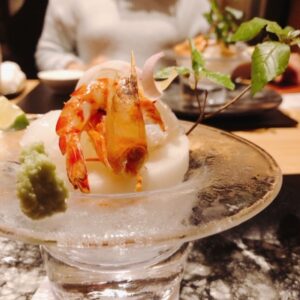お造りヒラメ・車海老・あおり烏賊、甘鯛の芝焼き・胡桃豆腐・菊菜のお浸し・子持ち鮎の煮びたし