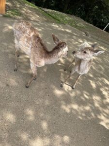 鹿さんにおせんべいをあげに行ってきたのですが、鹿さんたくさんの方におせんべいを貰っていたらしく、以前ならおせんべいを持っている人を見つけると突進してくるような感じだったのに、今年はお腹いっぱいなのか、あまり寄ってこないし、なんなら無視されるような感じでした(笑)