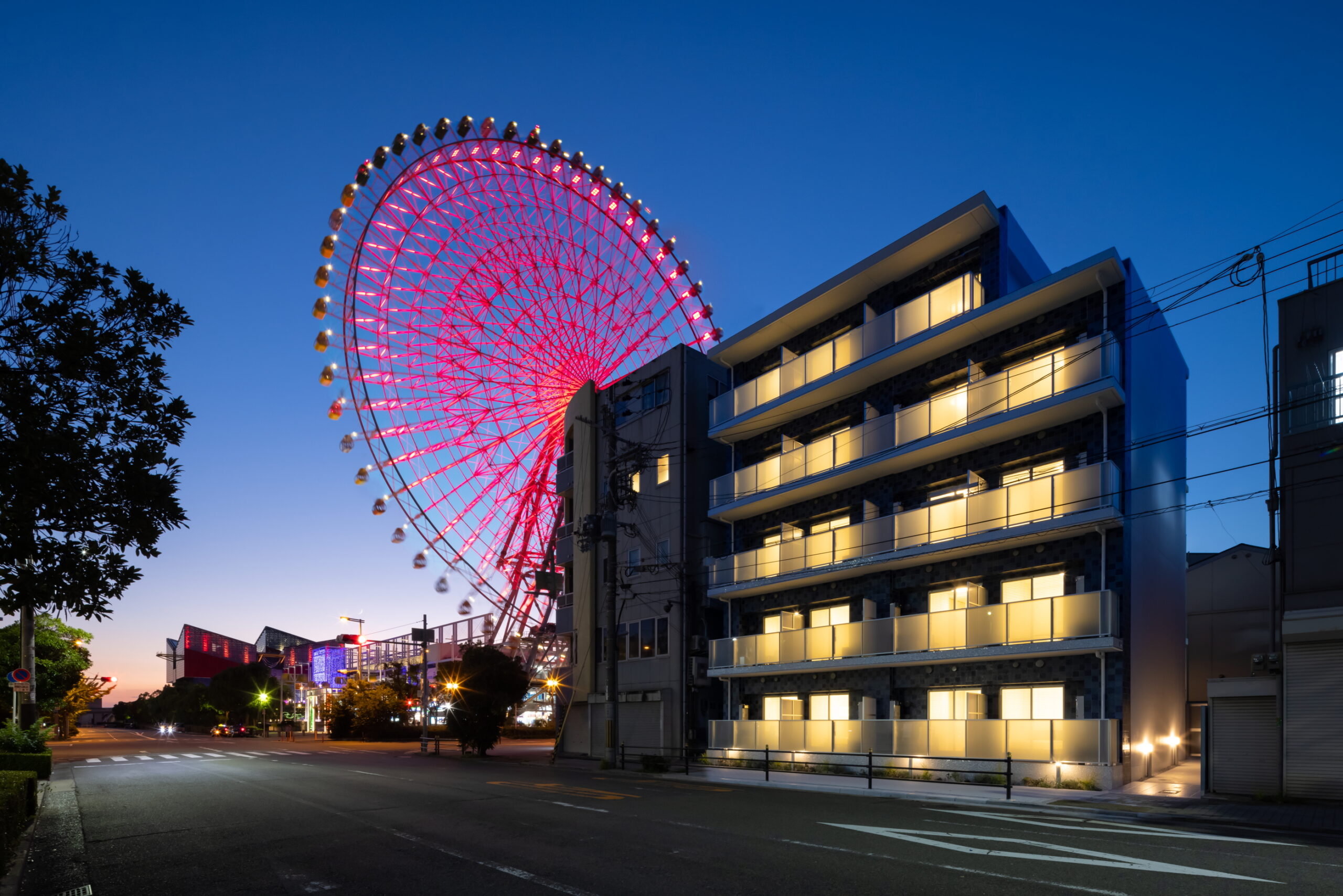 入居者様以外も自由に利用いただける建物になっていて、1階にフィットネスジムスペース・2階には大きなキッチンスペースや、屋上には海遊館の観覧車を眺めながらバーベキューを楽しんで頂ける屋上ガーデンなどイベントスペースが充実した施設になっています。