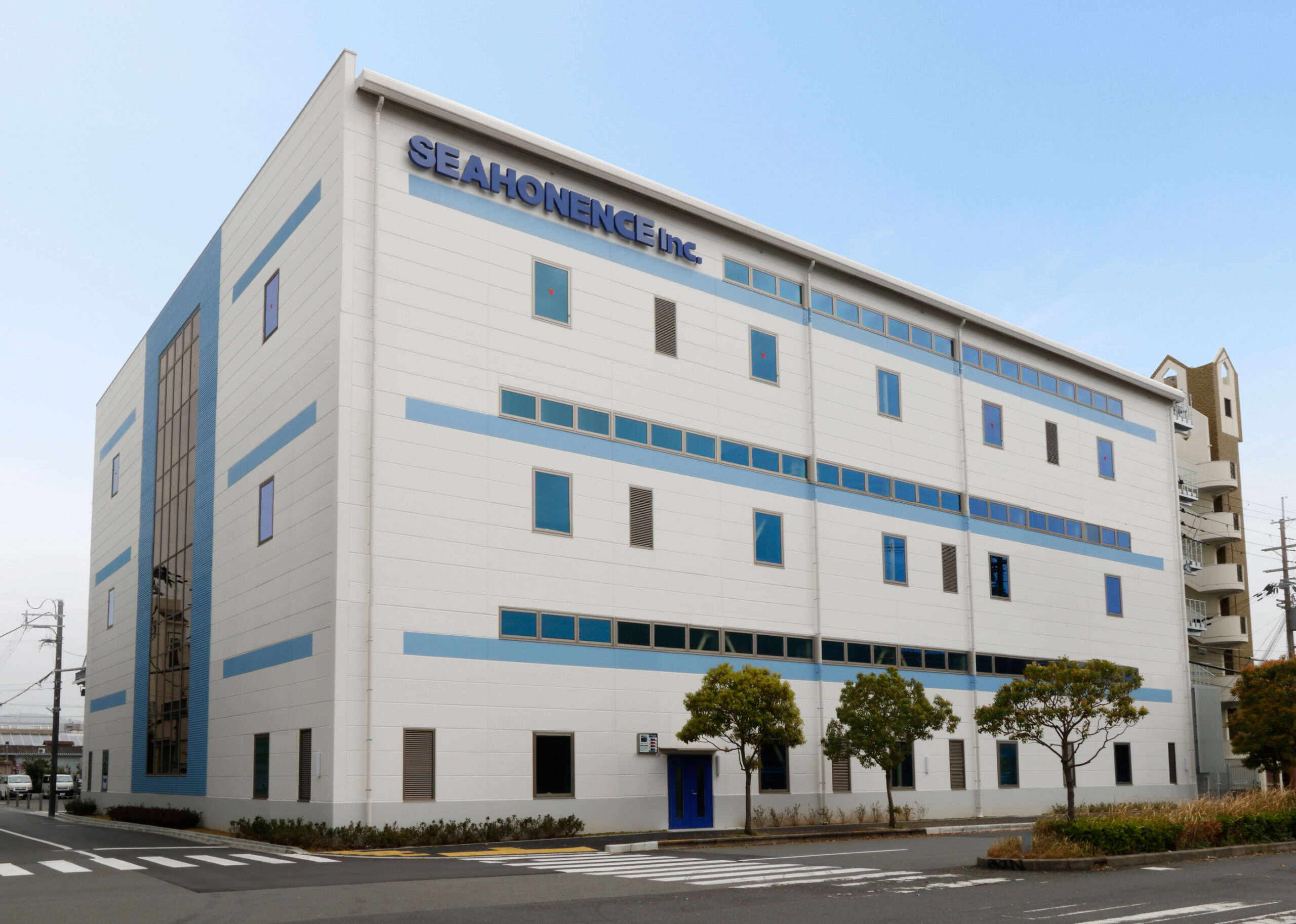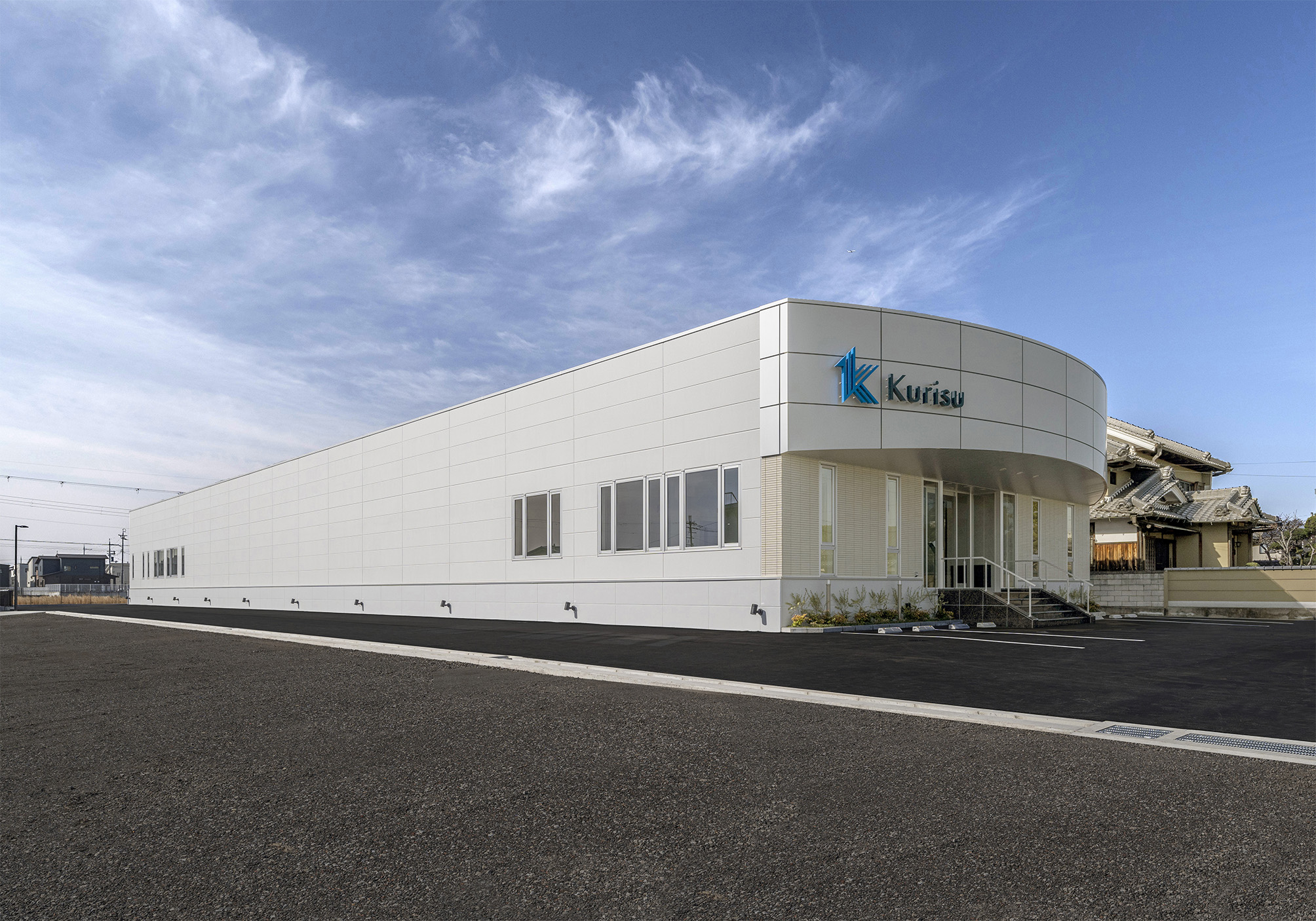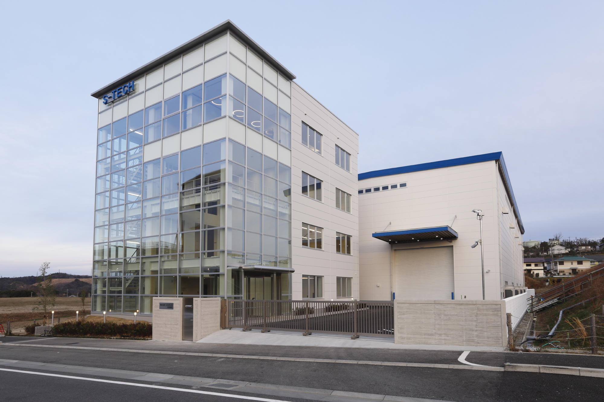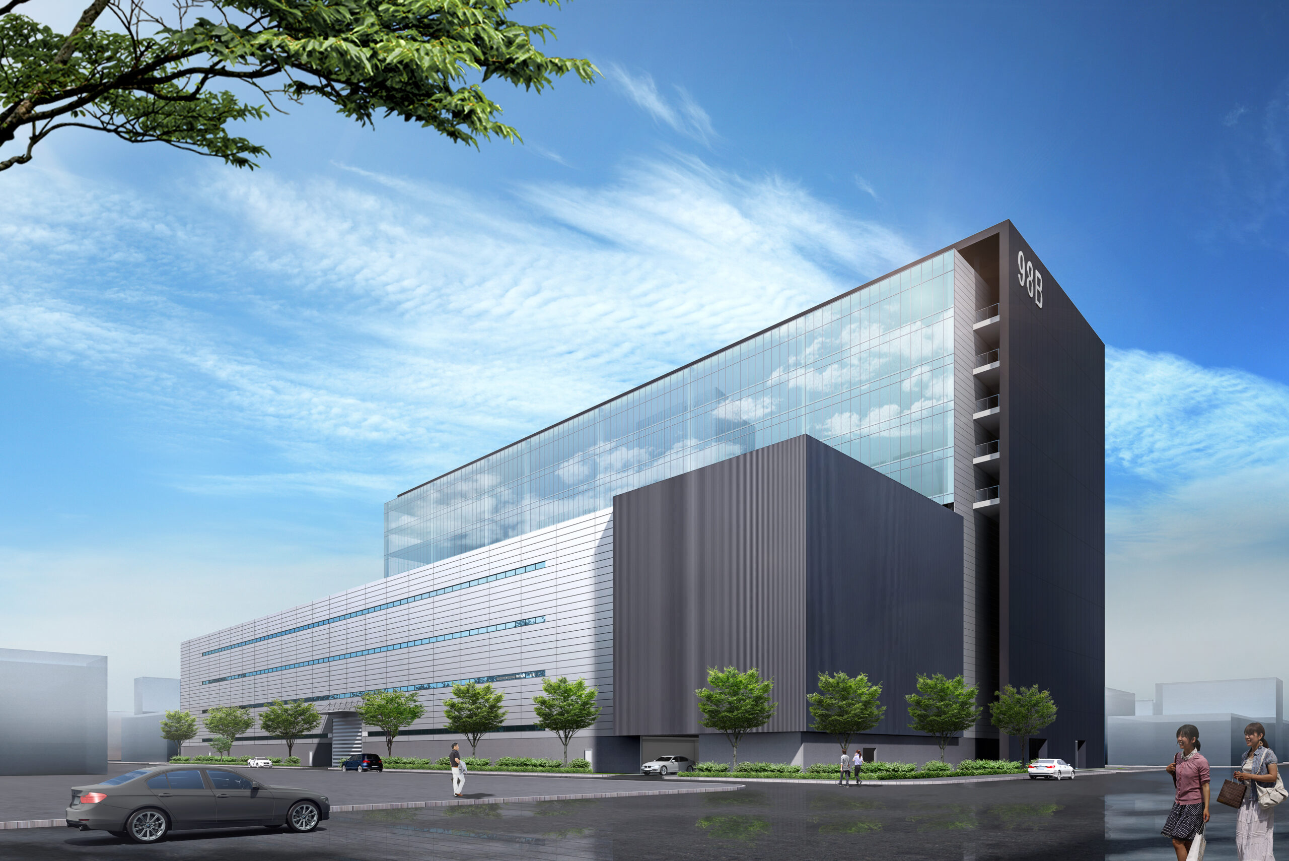 建物は広々としたエントランスとガラス張りのファサードを持つ開放的なデザインで、敷地内には豊かな緑化を施し、自然との調和を図りました。